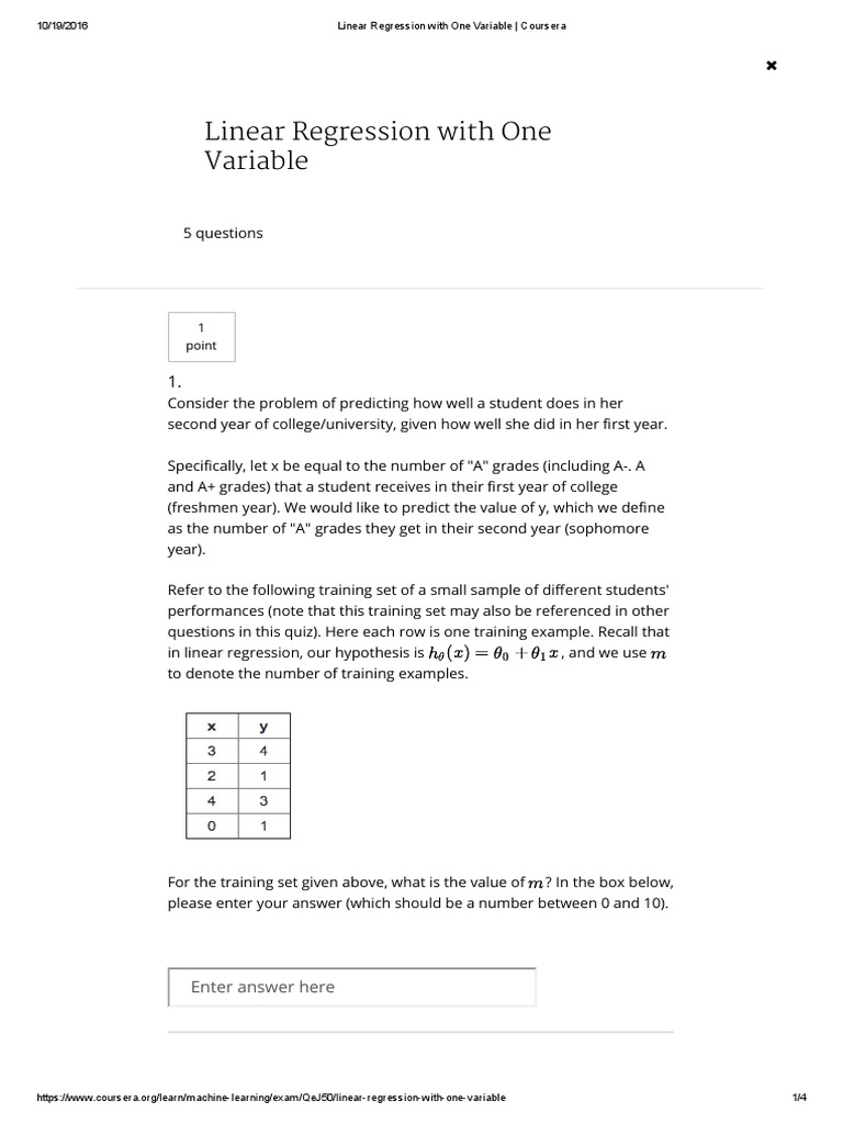 Oct True False Questions. We can get multiple local optimum solutions if we solve a linear regression problem by minimizing the sum of. There are multiple choice questions worth points each, and written questions. Lasso can be interpreted as least-squares linear regression where.